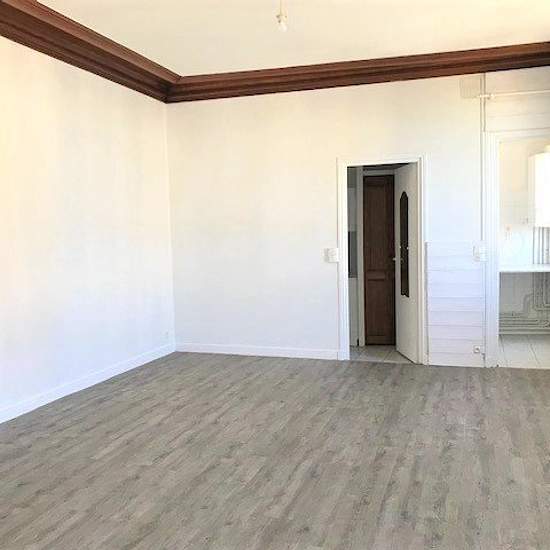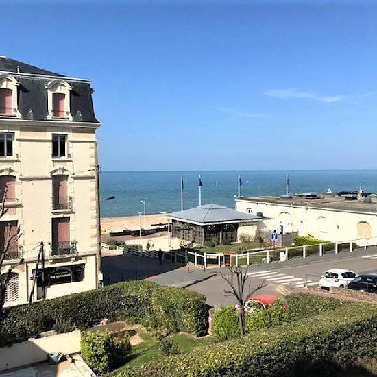 Appartement 2 pièces au 1er étage, d'une surface de 43,33 m², comprenant une entrée sur une pièce à vivre avec vue mer, une chambre, une cuisine et une salle de douche avec wc.