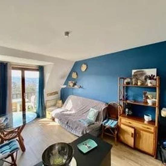Location pour 4 personnes, à 10 minutes à pied du centre ville et de la plage ... Appartement avec une pièce de vie accès balcon vue mer, cuisine ouverte, une chambre, une salle de douche avec wc. Accès piscine et tennis ... Idéal pour des vacances en famille !