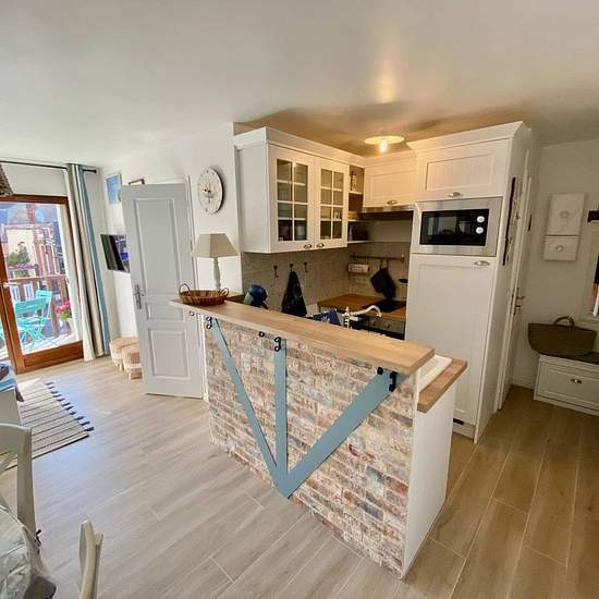 Location de vacances pour 4 personnes, en plein centre ville de Houlgate avec la plage à 30 mètres ! Cet appartement a été entièrement refait à neuf avec des belles prestations et avec goûts. Il comprend une entrée distribuant une pièce de vie avec accès balcon et cuisine ouverte, une cabine avec lits superposés, une salle de douche avec wc et une chambre avec un lit double. Idéal pour un séjour en famille à Houlgate sans la voiture !
