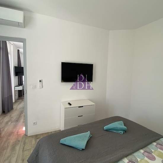 Dans bâtisse avec cachet appartement meublé entièrement rénové situé au 2ème et dernier étage sans ascenseur. En hyper centre à proximité de tous commerces et des halles victoria (Avenue des iles d'or). .Entrée, Séjour, Cuisine aménagée et entièrement équipée, Chambre, Salle d'eau, Wc séparés, Balcon, Parking privé, local vélo commun. Equipement : Lave linge, Lave Vaisselle, Four, Plaque Induction, Hotte, Climatisation, Sèche Serviette,2 Télévisions, Double Vitrage, Fibre. Loyer 850EUR Charges de copropriété comprises. Electricité et Eau 'In...