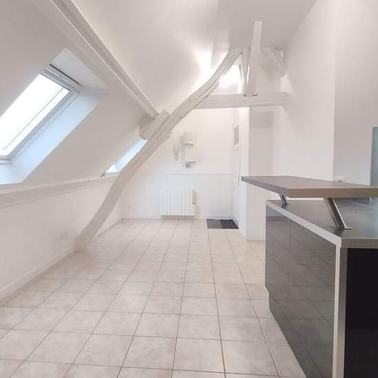 JANVILLE, T2. JANVILLE, à 10 minutes de Compiègne, Dans un bâtiment en pierre de taille, au deuxième et dernier étage, appartement traversant offrant une entrée sur pièce de vie avec cuisine américaine aménagée, une salle d'eau avec WC et une chambre. Une place de stationnement dans cour commune. Chauffage individuel électrique Disponible le 10/03/2026