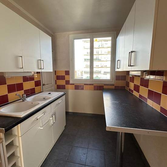 Appartement T2 à louer au 27 avenue du Général de Gaulle à Joué les Tours, composé d'une entrée avec placard, une cuisine aménagée avec un cellier attenant, un séjour avec balcon, une chambre, une salle de bains avec wc et une cave en sous-sol. Eau froide et eau chaude individuelle. Chauffage collectif. Disponible le 19 / 02. GLI.