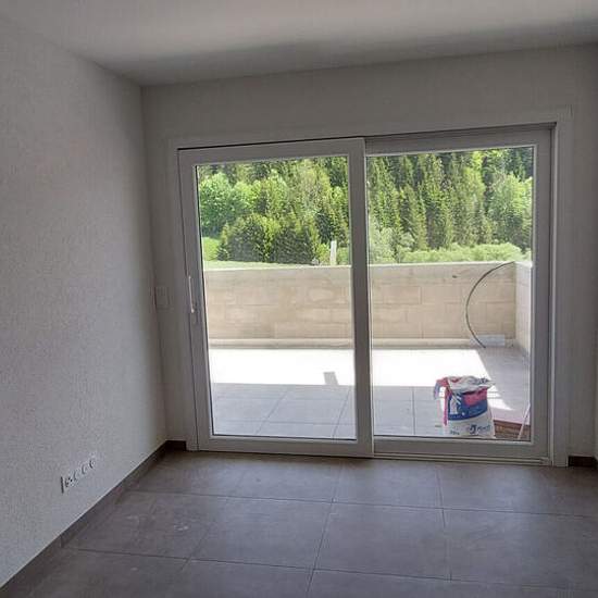 La Cluse et Mijoux, lotissement Fontaine Ronde dans un immeuble datant de 2022, un appartement de type F1 Bis comprenant : une entrée, une cuisine équipée et aménagée donnant sur un séjour avec grand balcon, une chambre, une salle d'eau avec douche et WC. Un garage en sous sol et un cagibi sur le pallier viennent compléter le bien. Chauffage collectif avec pompe à chaleur, production d'eau chaude par cumulus. Disponible mi février.