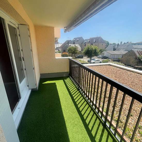 Appartement T2 résidence calme et sécurisée de 48m² comprenant une entrée sur couloir, une cuisine ouverte aménagée équipée (meuble haut et bas, électro ménagé, plaques à induction, hotte et four électrique, un salon-séjour donnant sur un balcon/terrasse, avec herbe synthétique et un store ban, Un WC, une salle d'eau avec branchement machine a laver, vasque sur meuble double tiroir, et douche a l'italienne avec siège. Un chambre avec placard. Une cave n°40 avec étagère et meuble rangement. Un garage n°1 avec porte manuelle et étagère. Loyer ...