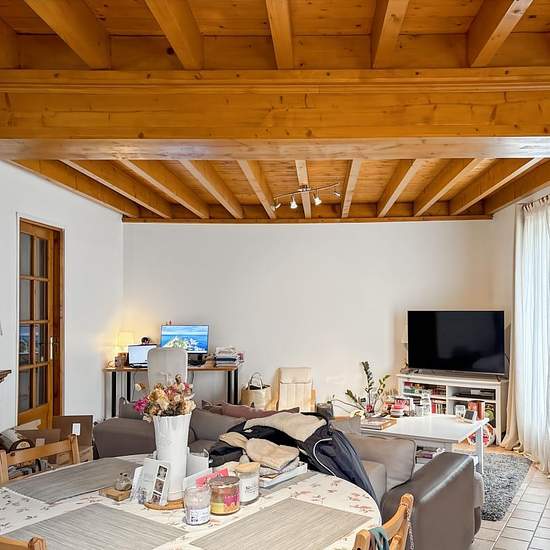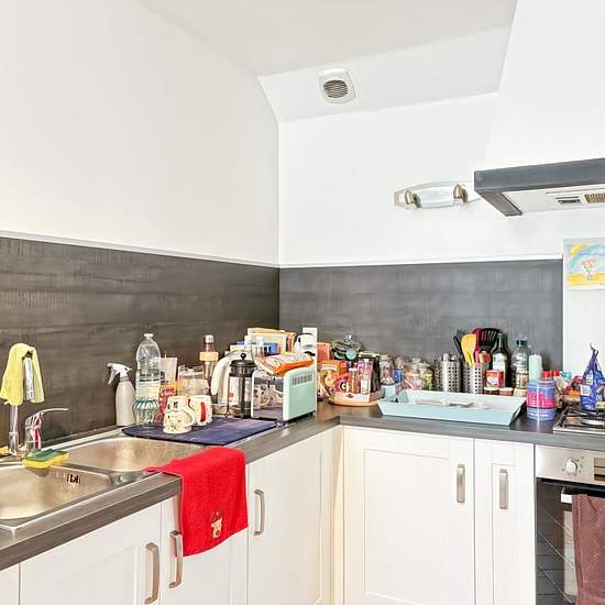 Dans résidence sécurisée, appartement de trois pièces en duplex, en très bon état. Jolie cuisine aménagée et équipée ouverte sur un spacieux séjour, deux chambres, salle d'eau avec WC. Chauffage au gaz. Parking privé. Situé au calme, dans un cadre verdoyant. Libre au plus tard le 10 mars.