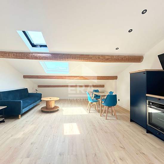 A LOUER 84240 LA TOUR D'AIGUES CENTRE VILLE APPARTEMENT MEUBLE TYPE 2 PIECES AVEC CAVE Au centre ville de la Tour d'Aigues, au 3ème étage d'une petite copropriété calme et bien entretenue, Era Val de Durance Immobilier vous propose ce loft meublé de type 2 pièces d'environ 30m² loi Carrez (41,70m2 surface au sol). Il se compose d'une pièce à vivre lumineuse avec cuisine ouverte, d'un coin nuit et d'une salle d'eau avec WC. Une cave complète ce bien. Appartement loué meublé, entièrement rénové avec de belles prestations (climatisation réversi...