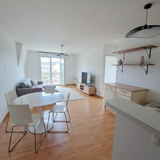 Appartement Lamorlaye (proche Chantilly), ( construction 2007), non meublé, à deux pas des commodités (commerces, bus, autoroute A1, écoles). Appartement T2, dernier étage avec ascenseur, dans une résidence sécurisée. Lumineux, il vous offre de beaux volumes. Il ouvre sur une entrée avec placard, une cuisine A/E ouverte sur un salon donnant sur balcon sans vis-à-vis avec vu panoramique sur le charmant village de Lamorlaye. Le coin nuit bien distinct se compose d’une belle chambre, une salle d’eau, un WC indépendant et d’un placard de rangeme...