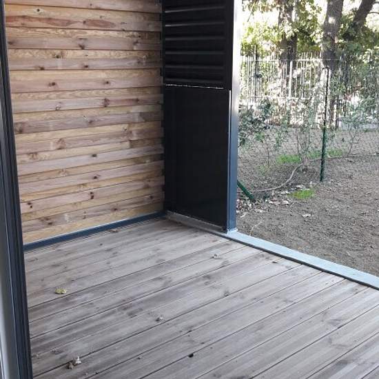 A Launaguet , dans le quartier de la Saudrune. Cet appartement de type 2 en rez de jardin est composé d'un séjour ouvert sur une cuisine équipée (évier inox, plaque 4 feux, hotte, meubles hauts et bas), un chambre, salle d'eau spacieuse Les plus : - Un parking aérien et un parking couvert. - Une terrasse de 7.00m2 et un jardin privatif de 56m² - Ligne Tisséo à 800 m station NOBLES ( Ligne 61) - Tous le commerces à 5 mn en voiture -Un local à vélos