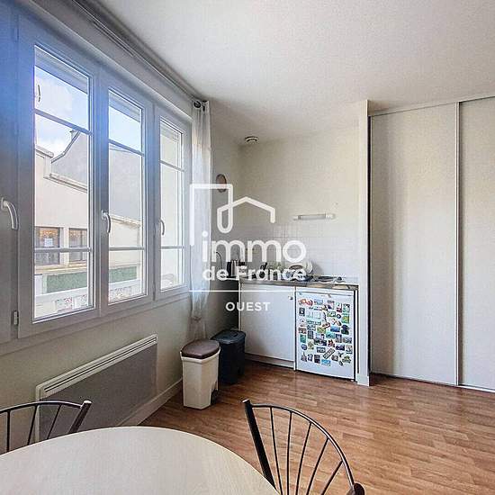 L6046-122. LAVAL, hyper centre, IMMO DE FRANCE OUEST vous propose un appartement T2 MEUBLÉ et équipé de 50.01m² offrant une grande pièce de vie ouverte sur une kitchenette, une chambre avec placard, une salle d'eau avec WC. Cave privative. Le grand atout de l'appartement : les grands placards qui offrent une solution de rangement supplémentaire. Les charges couvrent : entretien et électricité des communs, entretien extincteurs. Libre Pour toutes demandes d'informations et de visites veuillez contacter IMMO DE FRANCE OUEST au .