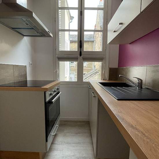BRETON ET JEANNEAU IMMOBILIER vous propose : Laval , Rive droite : un appartement comprenant un salon séjour, cuisine aménagée et équipée (plaque, hotte et four), salle d'eau, une chambre. Disponible à partir du 14/05/26. Loyer : 500Euro + 30Euro de provision de charges soumises à la régularisation annuelle (entretien + électricité des communs, ordures ménagères) Dépôt de garantie : 500Euro Honoraires : 426.80Euro TTC dont 116.40Euro de frais d'état des lieux REFERENCE : G697-3-ER