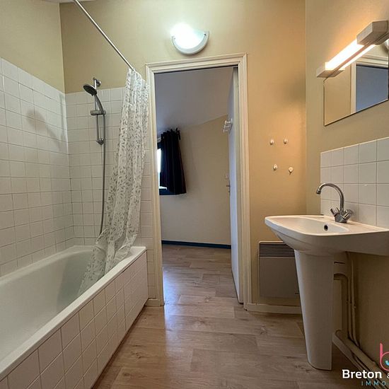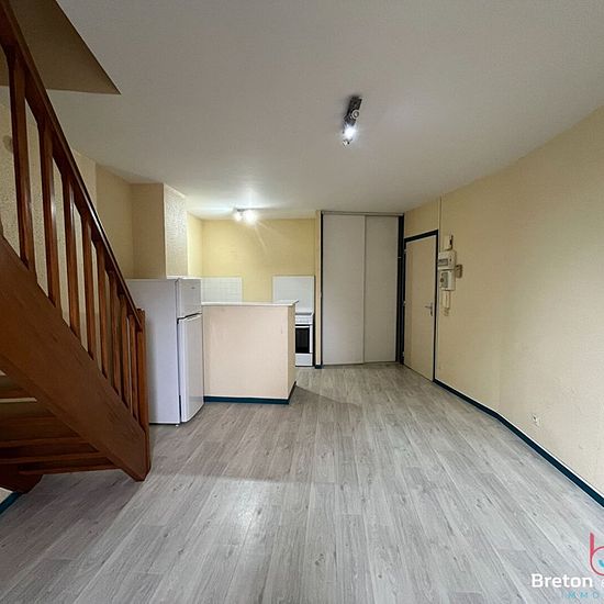 BRETON ET JEANNEAU IMMOBILER vous propose : Un appartement T1 de 41 m² en duplex comprenant : entrée sur séjour/salon avec kitchenette équipée. A l'étage : Palier, chambre, salle de douche/WC. Loyer : 420Euro + 50Euro de provisions de charges soumises à la régularisation annuelle (eau froide et parties communes) Dépôt de garantie : 420Euro Honoraires de location TTC : 390Euro dont 123.27Euro de frais d'état des lieux REFERENCE : L2467-ER Référence L1462-AH