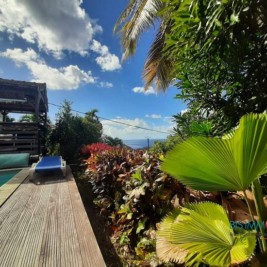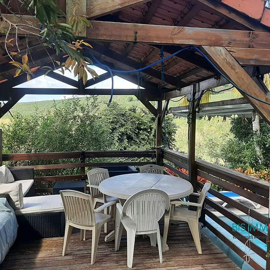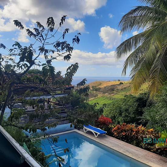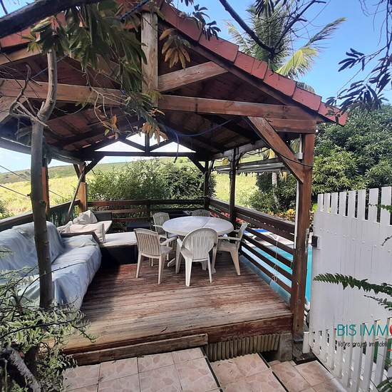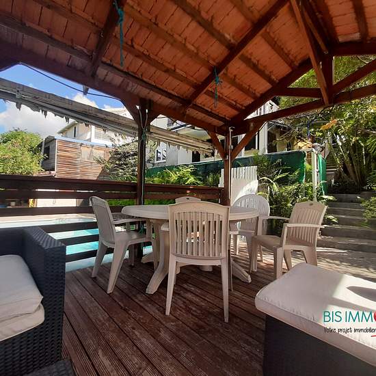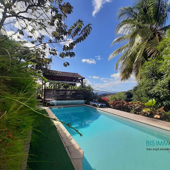 T2 meublé et équipée de 52 m² avec terrasse, accès piscine et kiosque. Eau, électricité, wifi inclus. 1 espace de 33 m² comprenant 1 cuisine équipée et aménagée ouvert sur séjour, 1 espace salon / détente et 1 espace salle à manger. 1 salle d'eau avec double accès (chambre et salon), 1 chambre climatisée. 1 véranda avec vue sur piscine et paysage. Situé dans un quartier résidentiel sur les hauteurs du Carbet. Environnement calme. Accès rapide à l'axe routier principal. A 3 minutes des plages du Carbet en voiture. DISPONIBLE A COMPTER DE SEPT...