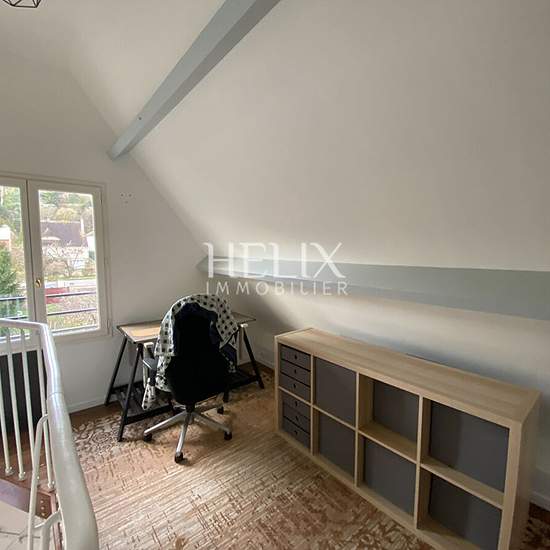 Le Pecq - Cité Charmante maison meublée de 2 pièces à louer au Pecq dans le quartier Cité. Celle si se compose d'un séjour lumineux donnant sur une mezzanine pouvant faire office de bureau, d'une cuisine ouverte aménagée équipée, d'une chambre avec rangements ainsi que d'une salle douches avec WC et lave-linge. Jouissance d'un local de rangements ainsi que d'une terrasse donnant sur jardin partagé. Accès RER en 20 minutes à pied. Stationnement libre dans la rue.