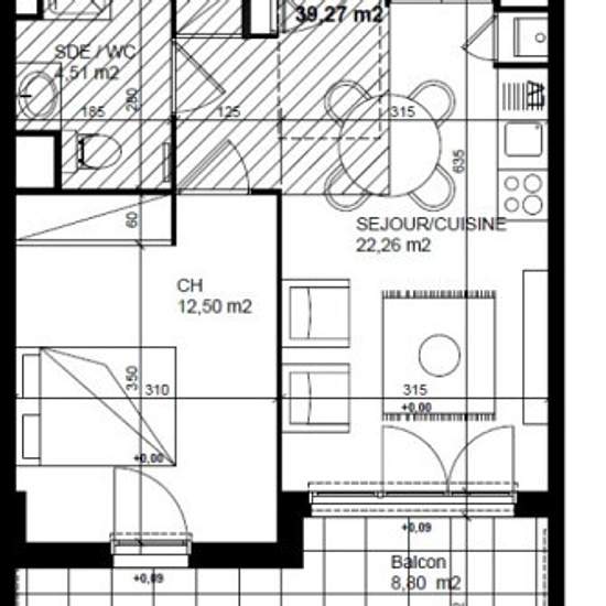 403 COURS D'Ô - AU COEUR D'UNE RESIDENCE NEUVE DE STANDING A FAIBLE CONSOMMATION ENERGETIQUE BEAU T2 CALME DE 39M² AVEC BALCON. Il est composé d'une belle pièce de vie, donnant accès au balcon une cuisine US équipée (hotte, plaques vitro, four, meubles haut et bas), une chambre en sol parquet avec placard avec accès sur le balcon une salle de bain aménagée avec meuble sous vasque et sèche serviette. Une place de parking en sous-sol. Chauffage individuel gaz. Visiophone. Consommation d'énergie totale entre 417 EUR et 564 EUR par an (prix moye...