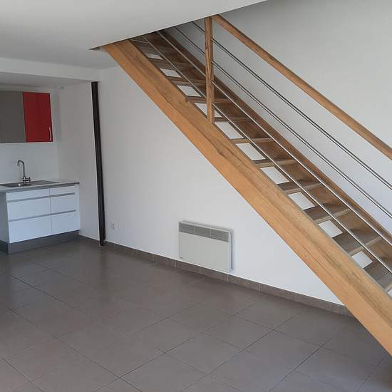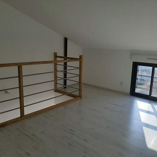 À LOUER Sur la commune du Pontet dans quartier calme proche Avignon, beau duplex atypique situé au 1er étage d'un immeuble. D'une superficie de 64 m² environ (surface utile 80 m² environ) comprenant au 1er niveau une entrée, un wc, une buanderie, un séjour avec cuisine aménagée, une grande terrasse plein sud de 27 m² environ. Au 2e niveau, un wc, une salle d'eau, une chambre et un bureau mansardés. Belles prestations : double vitrage, climatisation réversible à l'étage, 2 grandes baies vitrées alu de 3 m chacune, visiophone, cave et deux pla...