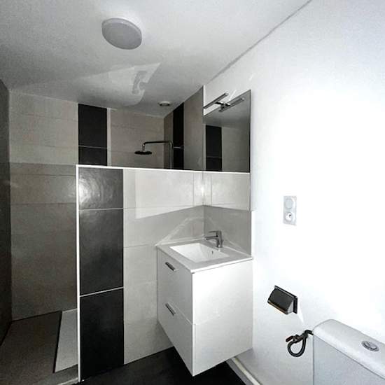 Bel appartement refait à neuf situé au 2ème etage, offrant une jolie vue, et comprenant une entrée, un séjour ouvert sur une cusine équipée, une chambre, ainsi qu'une salle d'eau avec WC. Stationnement extérieur. Chauffage électrique.