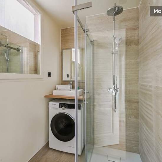 This beautiful 28 m² flat is located on the fifth floor (no lift) and can accommodate 2 people. It comprises : - a light-filled living area with lounge and dining room, - a bedroom with a double bed - a fully-equipped open-plan kitchen (coffee machine, toaster, kettle, microwave, hob, dishwasher, fridge, freezer), - bathroom with shower - separate WC, - work desk, - hoover, washing machine, tumble dryer, hairdryer, iron, - TV, satellite or cable, wifi, - radiators. A management fee of €364 will be charged for medium-term rentals. This fee in...