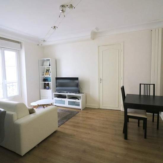 En plein centre ville au pied des commerces et au calme, 2 pièces de 47,75 au sol (47,25 m2 habitable) avec de beaux volumes. Il est situé au 1er étage sur cour arborée dans un immeuble ancien avec un local à vélos. L'appartement est composé d'une entrée, dégagement avec de nombreux placards, une cuisine aménagée (avec plaques de cuisson) partiellement ouverte sur le séjour, une chambre de 12 m2, une une salle de bains et toilettes séparés. Eau chaude et chauffage individuels au gaz. Une grande cave complète ce bien. Possibilité de louer un ...