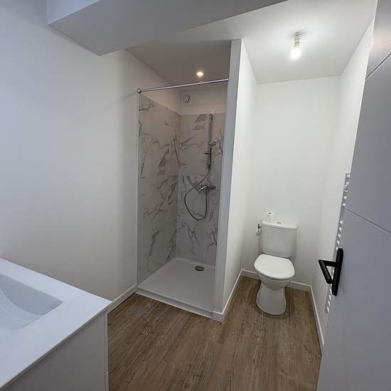 LEZIGNAN CORBIERES : Trés joli appartement T2 de 44 m2 habitables, entiérement refait à neuf, en 1er étage, avec climatisation réversible, proche tous commerces. Comprenant : entrée sur séjour avec coin-cuisine équipé, 1 chambre, 1 trés jolie salle d'eau. Appartement disponible