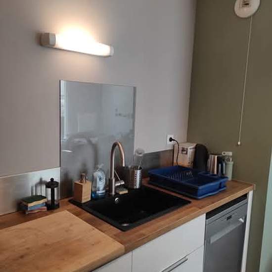 Appartement meublé à louer, localisé quartier Moulins à Lille, à 250 mètres du métro porte de Douai. Superficie de 68 mètres carrés avec un salon-cuisine, deux chambres, un toilette et une grande salle de bain. Tout est fonctionnel et meublé incluant une cuisine équipée (frigo-congelo, four, lave-vaisselle, plaques, micro-ondes, grille-pain), une télévision et une machine à laver. Grand lit dans la grande chambre et petit lit dans la petite, armoires, bureaux, tables et chaises. Location en rez-de-jardin dans un immeuble intérieur qui ne d...