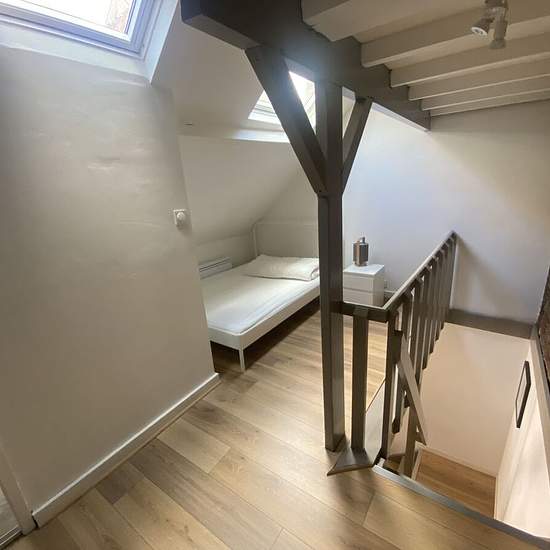 Prenez RDV ici pour visiter ce bien : Pour plus d'information, merci de nous contacter A LOUER, VIEUX-LILLE Référence G345-2 Joli T1bis de 27.38 m² avec mise à disposition du mobilier situé rue de la Monnaie dans le Vieux Lille. Ce bien comprend un beau séjour avec canapé, tapis, tables basses, meuble, table haute, chaises. Un coin cuisine équipée avec plaques, hotte, frigo, éléments haut/bas, un micro ondes, une machine à laver. À l'étage vous trouverez une chambre avec un lit, une commode, des rangements avec une salle de bain attenante ...
