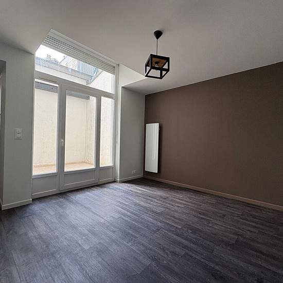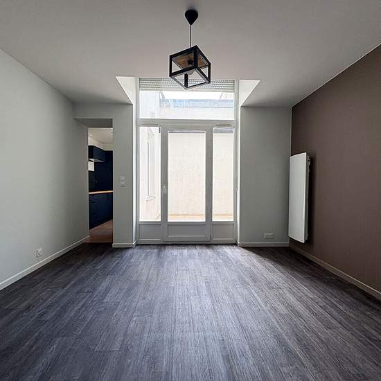 Lille Wazemmes Très bel appartement en rdc entièrement rénové, salon séjour donnant sur une cour intérieure privative, cuisine équipée séparée, 1 chambre, une salle de bain avec baignoire équipée et WC séparé. Chauffage et eau chaude individuelle Libre immédiatement Loué non meublé !
