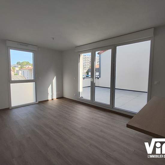 Au sein d'un résidence récente, ce magnifique T2 est composé d'une entrée avec placard, un séjour donnant sur une grande terrasse de 28 m², une cuisine ouverte, aménagée et équipée (four, plaques de cuisson, hotte et lave vaisselle), une chambre avec placard, une salle d'eau et toilettes séparés. Appartement équipé en domotique. Il y a une place de parking privative. Disponible début avril ! Loyer hors charges 547 euros Provision sur charges 53 euros (soumises à régularisation annuelle) Loyer charges comprises 600 euros Dépôt de garantie 547...
