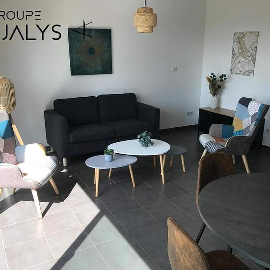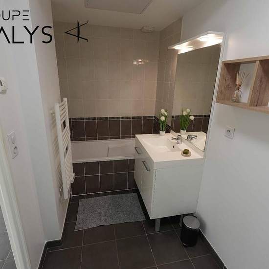 T2 MEUBLÉ AVEC TERRASSE ET GARAGE - LIMONEST - T2 MEUBLÉ AVEC TERRASSE ET GARAGE - 24 rue Alphonse Lamartine 69760 Anjalys vous propose à la location un appartement T2 meublé de 46,38m2 situé au 1er étage d'un petit immeuble calme et récent. Le bien se compose d'une entrée, un séjour lumineux donnant sur une grande terrasse de 19,47m2, une cuisine ouverte aménagée et équipée (plaques de cuisson, hotte), une chambre avec un grand placard de rangement et une salle de bain avec WC. Un garage en sous-sol vient compléter le tout. Chauffage et eau...