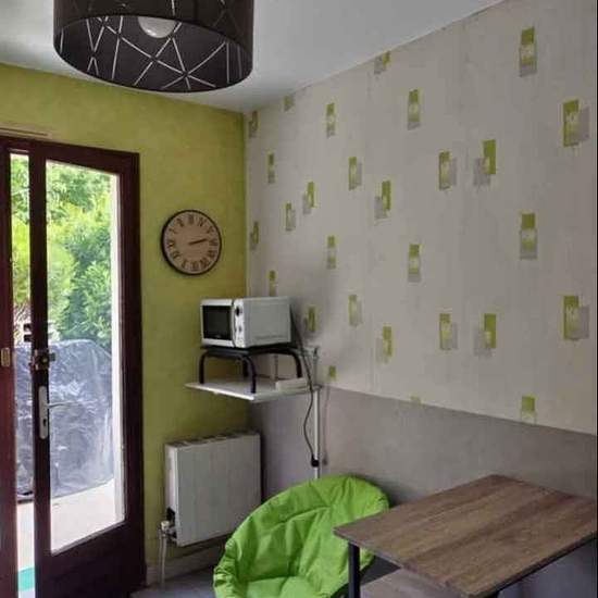 A louer F1 meublé indépendant dans propriété. A 10 mn du centre ville d' Angoulême, proche FAC, IUT, École d infirmière (Girac), proximité commerces et arrêt de bus. Cuisine équipée et garnie (frigo, micro-onde, plaque vitrocéramique, vaisselles, batterie et ustensiles de cuisine, placards, table, chaises, ect .. Chambre avec une grande armoire, bureau, chaise, ect .. Salle d' eau avec douche, lavabo, meuble rangements et wc. Terrasse. Parking privé. Loyer mensuel à payer en début de mois 400€+60€ charges (eau, électricité, chauffage). Cauti...