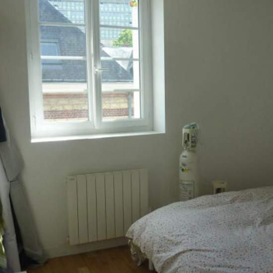 LISIEUX centre-ville appartement de type F2 de 42,75 m² au 3ème étage avec cave comprenant : Cuisine aménagée ouverte sur la pièce principale, 1 chambre, salle de bain avec wc Chauffage individuel électrique Disponible au 19 décembre 2025