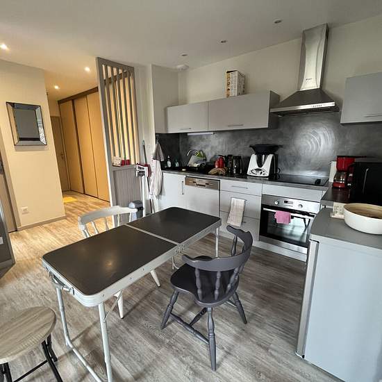 Résidence Les Alizés. Appartement de type 2, au 1er étage, dans résidence calme et sécurisée, comprenant : - une entrée avec placards de rangement, une cuisine équipée (lave vaisselle + four + plaque + hotte aspirante), un séjour, une chambre, une salle d'eau avec wc ; - un balcon et un parking exterieur. Chauffage indivduel électrique. Charges de 10 € : entretien des communs. Disponible le 09 / 03 / 2026.