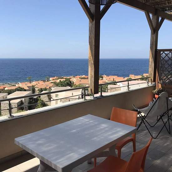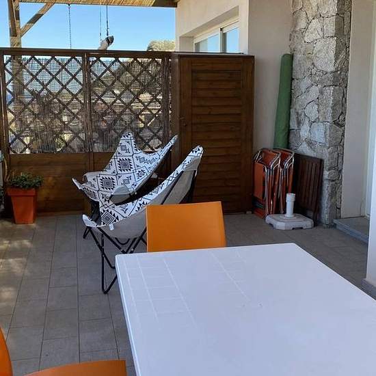 A seulement 3 minutes à pieds du bord de mer, superbe appartement climatisé et bien agencé. Magnifique vue et imprenable sur mer. Terrasse ombragée, salon de jardin, parasol, séjour avec canapé lit, cuisine moderne et bien équipée, chambre avec lit en 140 et matelas ultra confortable, une salle d'eau-wc. Parking privatif. Située sur la Marine de Sant'Ambroggio, piscine municipale, petits commerces de proximité, port, club méditerranée, tennis, restaurants. Vacances réussies garanties. Service de location de voiture sur demande.