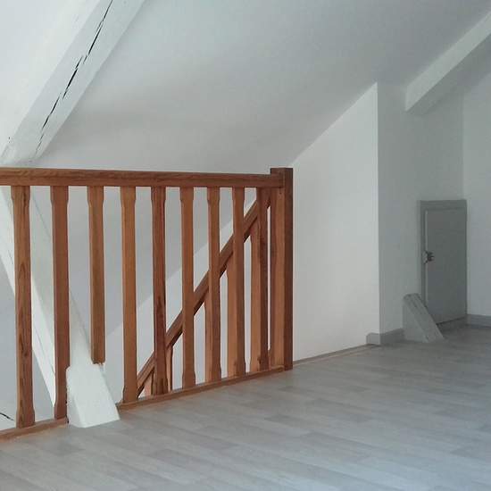 Parfaitement situé au centre historique de Luxeuil-les-Bains, au 3ième et dernier étage dans un très bel immeuble. Beaucoup de charme pour cet appartement atypique de type F2. Se compose d'une entrée, une cuisine équipée, un beau séjour avec poutres apparentes, une chambre en mezzanine et une salle de bains avec WC. Chauffage ind. éléctrique nouvelle génération. LOYER : 450 EUR + 30 EUR DE CHARGES = provision d'eau + l'électricité des communs. LIBRE DE SUITE