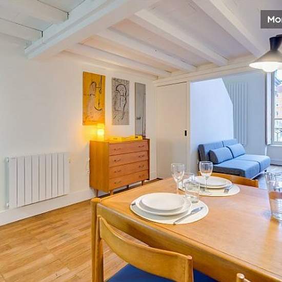 Located in the heart of the 1st district of Lyon, a few steps away from the Place des Terreaux, overlooking the Opéra Nouvel, in the heart of the historic centre at the bottom of the famous slopes of the Croix-Rousse, it is close to restaurants, buses, metro and public car parks. This furnished apartment of 42 m (about 452 ft) belongs to a magnificent 19th century building complex formerly occupied by the famous silk workers of Lyon. This furnished apartment is composed of a very pleasant living room with a huge window, with a living room (T...