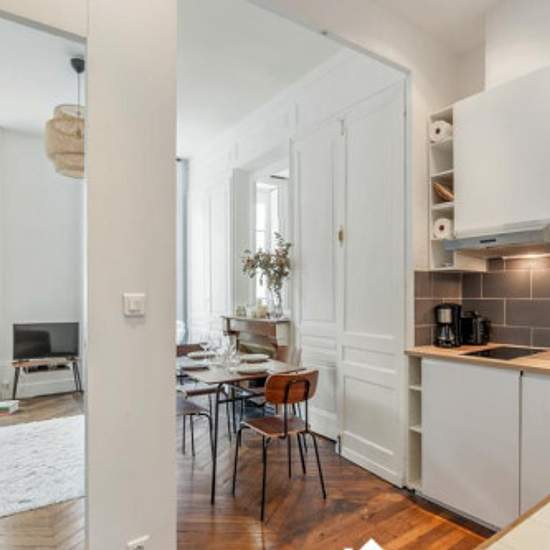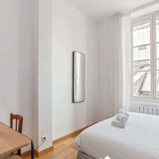 Situé au coeur de la Presqu'île, cet appartement est idéal pour accueillir 2 personnes. Proche de commerces et des transports, cet appartement est parfait pour habiter à Lyon. Appartement refait à neuf de 45 m² situé au 2e étage sans ascenseur. Ce logement bourgeois avec moulures et parquet est composé de : - un salon charmant, - une cuisine entièrement équipée (bouilloire, machine à café, grille-pain, four, micro-ondes, plaques de cuisson, lave-vaisselle, frigo), - une chambre avec lit double, - une salle de bain avec baignoire, - aspirateu...