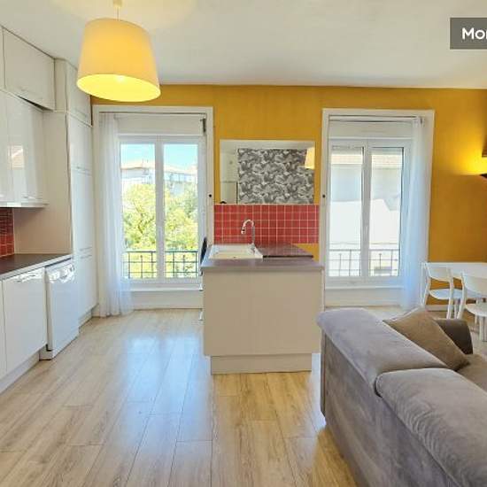 Very attractive, bright 42 m² flat with 1 bedroom, garage and mobile air conditioning. Quiet, unoverlooked flat on a small one-way street used mainly by residents. Double glazing and electronic blinds throughout. Spacious living room with a large, well-appointed kitchen. Living room with TV, coffee table and very good quality sofa bed. Kitchen with sink, oven, microwave, kettle, toaster, fridge/freezer Dishwasher, plenty of storage space and kitchen utensils Bedroom with double bed, wall cupboard, bedside table and lamps Bathroom with shower...
