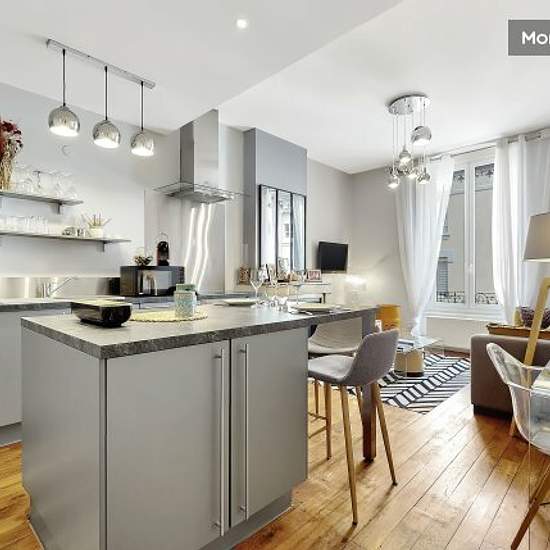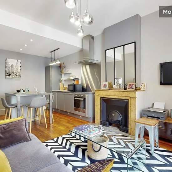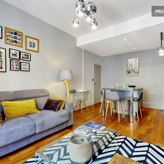 Rent includes all charges: water, electricity, gas, Internet, Wi-Fi, heating, monthly cleaning, household linen, etc. L'agence Urban Séjour offers you a nice flat of 42 m with 1 bedroom Well appointed, comfortable, fully equipped Sleeps 1 to 3: Sofa-bed in the living room (160*200) Entrance : coat rack Living room: sofa bed (160*200), coffee table, 2 stools, window with blinds, street view, TV, storage space Open-plan kitchen: single sink, 4-burner halogen hob, dishwasher, electric extractor fan, fridge/freezer, microwave, oven, espresso cof...