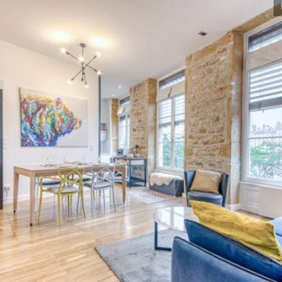 Vivez l'expérience unique du centre historique de Lyon en séjournant dans cet appartement récemment rénové de 52 m², situé au 1er étage sans ascenseur, parfait pour deux personnes. Avec une vue imprenable sur la Saône et de grandes fenêtres laissant entrer la lumière naturelle, cette location se compose de : - un séjour lumineux avec salon, espace repas et coin bureau, - une cuisine ouverte et entièrement équipée (machine à café, grille-pain, bouilloire, four, micro-ondes, plaques de cuisson, lave-vaisselle, réfrigérateur, congélateur), - un...