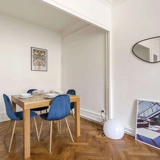 Le logement est composé d'une entrée spacieuse avec rangements et coin bureau, d'un séjour lumineux avec un espace salon, canapé lit confortable installé face à la télévision pour vos moments de détente. Vous pourrez profiter d'un espace salle à manger dans le séjour. La cuisine est toute équipée, appareils et ustensiles de cuisine mis à disposition, ainsi qu'un petit bar et chaises hautes. Vous disposerez d'une belle chambre lumineuse avec lit double, rangements ainsi qu'un accès au balcon! La salle de bain est fonctionnelle avec baignoire....