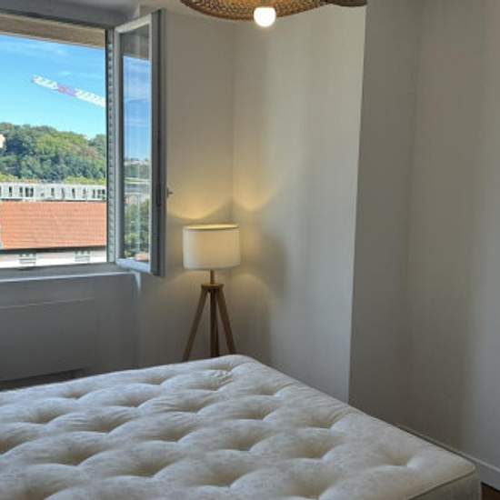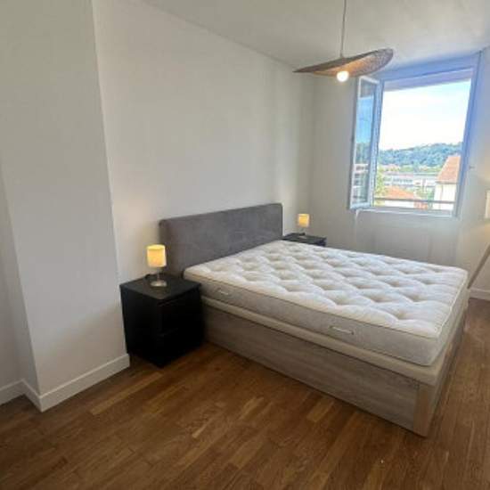 T2 à louer à Lyon 9e, 1000 €/mois charges comprises. Cet appartement est situé à Lyon 9e rue de Saint Cyr, à proximité de la station de métro Vaise, et de toutes les commodités restaurants commerces écoles etc. L'appartement se trouve au troisième étage sans ascenseur d'une copropriété bien entretenue et calme. C'est un T2 de 54,77 m2 comprenant une grande entrée, une cuisine équipée et aménagée ouverte sur un grand séjour et salle à manger, une chambre avec bureau et rangement ainsi qu'une superbe salle de bain. Appartement entièrement réno...