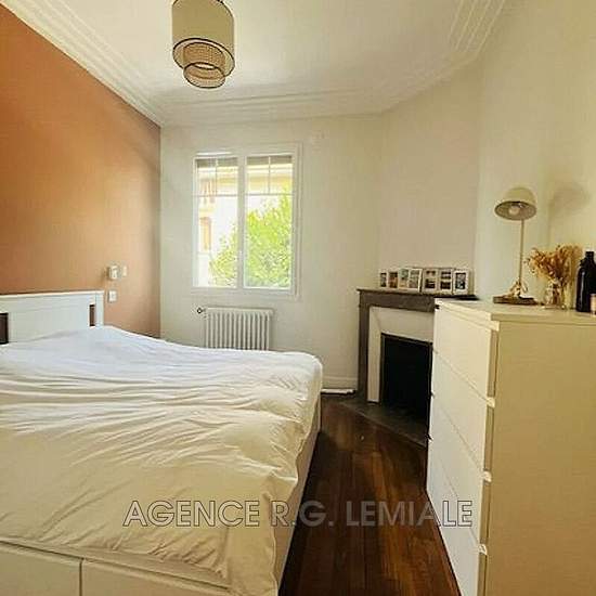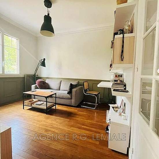 AGENCE RG LEMIALE: Proche centre ville, à 10 minutes de la gare RER, grand et beau deux pièces en parfait état dans un immeuble ancien de charme. belles prestations, moulures, parquets, espace télétravail fibré. cuisine équipée Isolation et doubles vitrages. Jardin collectif, chauffage individuel au gaz.