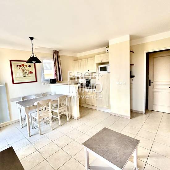 À louer, sur le domaine sécurisé du golf de Pont Royal (13370) Mallemort, Appartement meublé de type 2 d'une surface de 39m2 au dernier étage avec vue dégagée, terrasse et parking privé en sous-sol. Le bien est composé d'une entrée, une cuisine américaine ouverte sur un séjour lumineux, une salle de bains, un wc, une chambre, avec rangements et d'un lave linge Loyer mensuel : 795EUR loyer de base : 715EUR - Provisions pour charge 80EUR (eau froide, copropriété sécurité 24h / 24h)EDF et internet à charge locataire. Dépôt de garantie: 950EUR H...