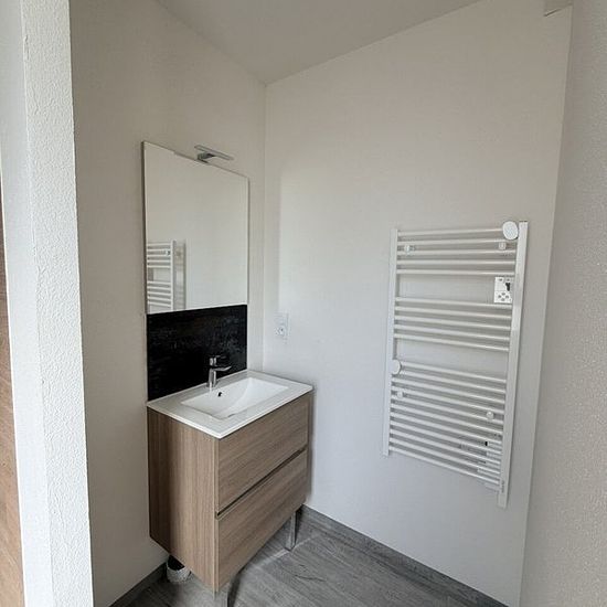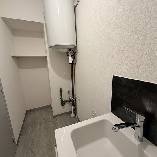 Rdc : séjour, carrelage et coin cuisine aménagée, 30 m². Buanderie, carrelage, 4 m². Wc. Une chambre, carrelage, 11 m². Salle d'eau privative avec douche à l'italienne. Divers : double vitrage, chauffage électrique. Parking possible en supllément. 10eur / mois.