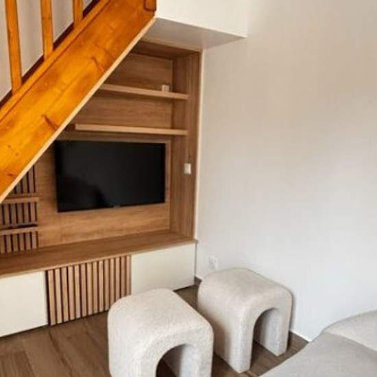 Disponible immédiatement Découvrez ce superbe duplex meublé premium, entièrement rénové et décoré avec goût. Situé au cœur de Marines, dans une ancienne bâtisse de charme, l'appartement offre un cadre de vie moderne, lumineux et chaleureux, idéal pour un jeune couple ou un cadre recherchant confort et tranquillité. Les atouts du logement : Salon & espace de vie Séjour cosy avec canapé bouclette haut de gamme Meuble TV intégré sur mesure Éclairage moderne & ambiance chaleureuse Grande luminosité Cuisine design entièrement équipée Cuisine neuv...