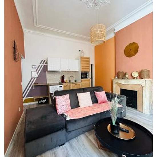 Marseille 4eme, au calme, proche des 5 avenues et réformé canebière, écoles, universités, gare de Marseille Saint-Charles, transports (bus, métro, tramway, etc..) Immeuble bourgeois, belle hauteur sous-plafond, Appartement Type 2 décoré, meublé, équipée, cuisine, séjour, chambre, salle d'eau, wc, terrasse plein sud
