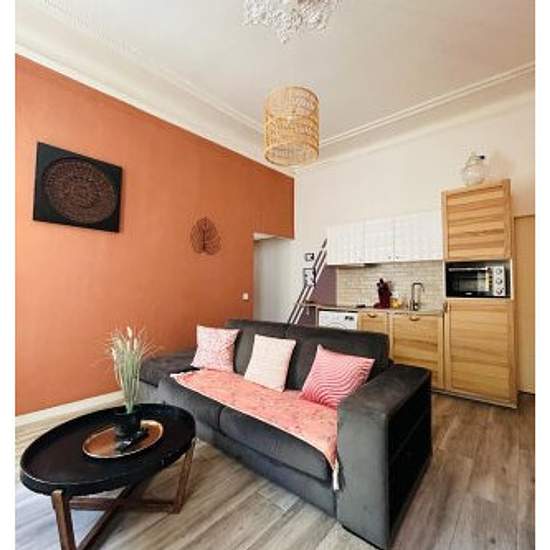 Marseille 4eme, au calme, proche des 5 avenues et réformé canebière, écoles, universités, gare de Marseille Saint-Charles, transports (bus, métro, tramway, etc..) Immeuble bourgeois, belle hauteur sous-plafond, Appartement Type 2 décoré, meublé, équipée, cuisine, séjour, chambre, salle d'eau, wc, terrasse plein sud