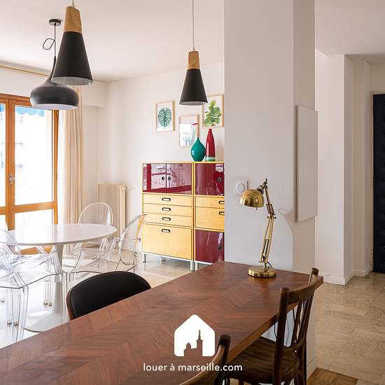 Dans le quartier agréable du Camas, en fond d'impasse au calme et dans une résidence très bien entretenue, joli appartement T3 meublé clair et ensoleillé. Belle terrasse plein sud, entièrement équipé, 2 chambres, une cuisine séparée et possibilité d'un box fermé privatif pour 120 / mois . Climatisation installée en juillet 2023. METRO M1 & TRAMWAY T2 REFORMES CANEBIERE BUS #BUS #52 ROOSEVELT DEVILLIERS