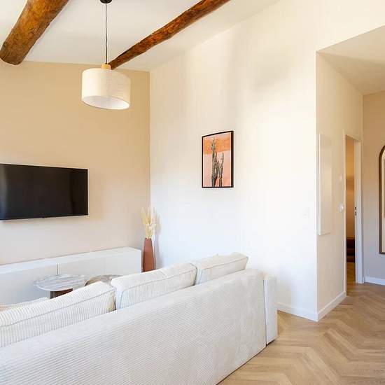 Vestizy vous propose A Louer Marseille 13006 magnifique T2 – 35 m2 entièrement refait à neuf et meublé au goût du jour, avec des prestations de standing au calme absolu – coup de cœur assuré. Attention bien lire l'annonce jusqu'à la fin s'il vous plaît Situé dans une rue calme au 3e et dernier étage, ce bien est équipé de : Séjour : - Canapé 3 places convertible - Tables basses - Console TV - Tapis, poils moyens - Table à manger - 3 places - Smart TV UHD 55” - Chauffage à inertie sèche climatisation reversible (chaud et froid) Chambre: - Lit...