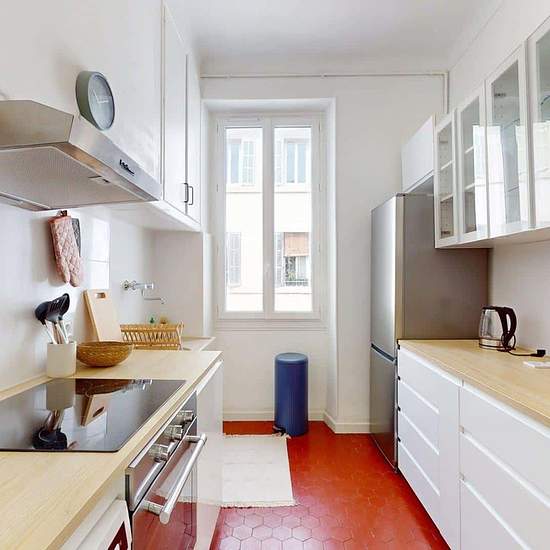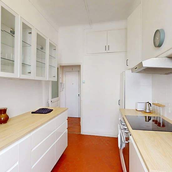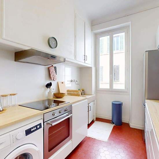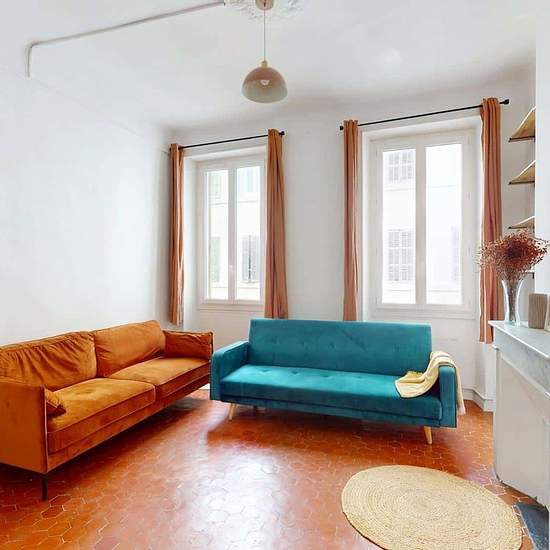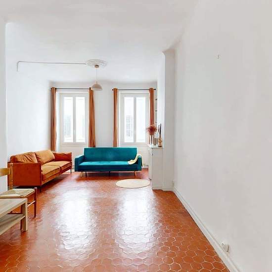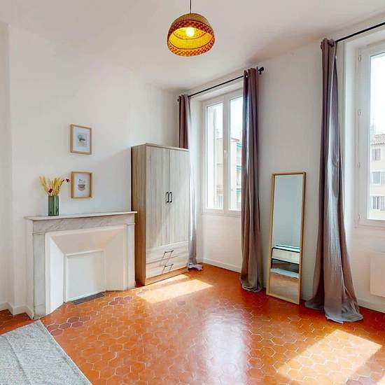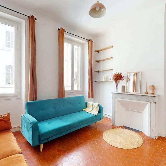 Nous vous présentons ce T3 de 76m² au 45 rue Falque, Marseille. LE LOGEMENT La pièce de vie est meublée avec 2 canapés, une table basse, deux chaises, des rangements ainsi qu'une jolie cheminée décorative. La cuisine séparée est équipée d'un four, de plaques de cuisson, d'une hotte, d'un évier, d'un réfrigérateur avec compartiment congélateur, machine à laver ainsi que de nombreux rangements et ustensiles de cuisine. Le plus : une bouilloire, une machine à café et un grille pain sont également fournis pour vos petits déjeuners. La salle d'e...