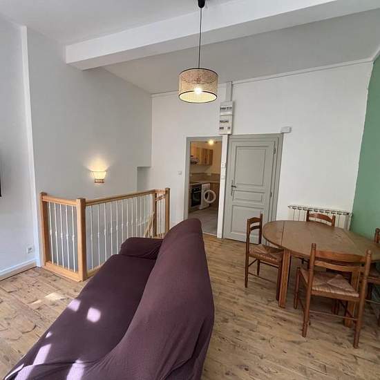 Libre fin décembre 2025. Appartement meublé de type 2 en souplex, situé au centre-ville de Mende, proche de parkings publics. Au premier étage d'une petite copropriété, entièrement rénové, il se compose d'une chambre en souplex, d'une salle d'eau / WC et au premier étage d'un salon et d'une cuisine toute équipée (réfrigérateur, plaque électrique, four, hotte aspirante, machine à laver). Les charges comprennent une provision pour l'eau, l'électricité, les ordures méangères et les communs. Il faut rajouter le chauffage qui est au fioul.(Plus d...